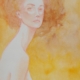 Le velature leggere e trasparenti accompagnano la figura femminile in uno spazio di luce, dove il segno e il pigmento si fondono per suggerire stati d’animo, memorie e sogni.